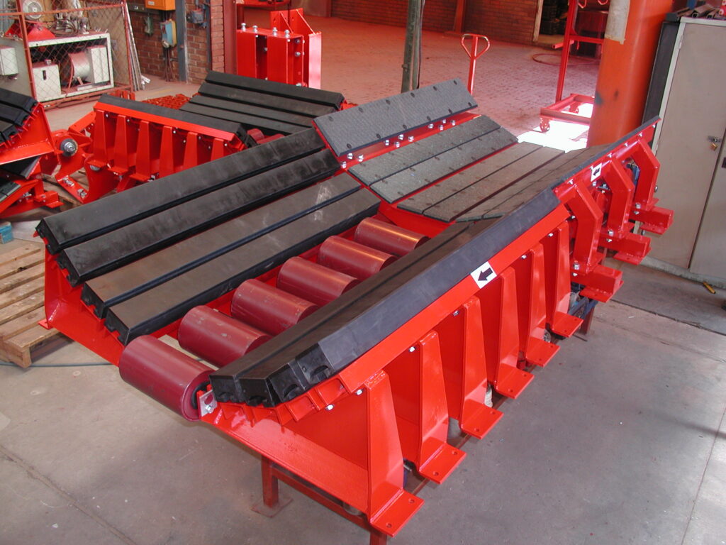 OST heavy-duty impact beds protect the conveyor belt from damage caused by heavy or abrasive loads, impact shocks and wear and tear. These robust impact beds are designed to enhance the efficiency of conveyors, by absorbing and cushioning the load at critical points, especially where the conveyor belt meets a transfer point or the chute, where fine or course heavy material is being transferred and where there is a build-up of materials in the transfer chute.